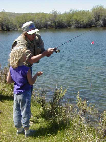 Kid's Fishing Day at the CCC PondsKid’s Fishing Day is held each year in June at the CCC Ponds near Fremont Lake in conjunction with National Fishing Week. Kids young and small are invited along with their parents or an adult. This is a great way to spend the day with your favorite kid doing fun fishing-related activities! Lunch and refreshments and many fun Clinics about fishing are held. Participants are awarded prizes. The Clinics typically include: Spinning & Fly Casting Instruction; Fishing Safety; Hook Baiting; Fish Handling; Fishing Ethics; Knot Tying; Fish Habitat; Fish Identification. Any adult interested in volunteering with any of these activities is welcome to participate. Kids’ Fishing Day is sponsored by the Wyoming Game & Fish Department, U.S. Forest Service, Bureau of Land Management, Trout Unlimited and EnCana USA. The CCC Ponds were first built near the south end of Fremont Lake in the 1930s by the Civilian Conservation Corps, then were improved for fishing and wildlife habitat in the late 1990s with the help of local school children, federal and state agencies, businesses and organizations.