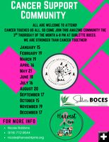 Everyone is welcome to attend the Cancer Support Community which meets the third Thursday of the month from 6-8 PM at Sublette BOCES in Pinedale. For more information, contact Nicole Robbins, President/Founder - Harvest 4 Pink, 916-712-9544, nicole@harvest4pin
