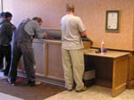 Owner Michael Lavin, middle, is applying the counter top glue. |