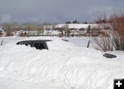 As we made our drive around the neighborhood today, there were lots of folks out with snowblowers and 4-wheelers with blades on the front moving snow out of driveways and sidewalks. It was wonderful to see people showing their caring nature by taking extra time to pop next door to clear out the deep snowpiles in the driveways saving hours of back-breaking hand shoveling for their neighbors. We saw big town graders out working on the snow, snow plows, big pickup trucks with blades in front, medium sized pickup trucks with snowblades, a cute little mini-sized front end loader making the rounds clearing snowpiles, and many people outside with hand shovels and exhausted expressions clearing snow from their lots.