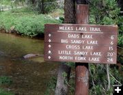 There are 12 developed camping spots at the trailhead with parking, tables, restrooms and fire pits. On Sunday, August 1, 2004, only three of the camping spots were being used. For those who don’t want to camp, Big Sandy Lodge has 10 guest cabins just a couple miles from the trailhead. There are also numerous undeveloped camping spots along the way. The trailhead is busy this time of year. On Sunday at 3 pm we counted 72 vehicles at the trailhead from 21 different states.