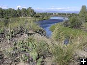 Recently we decided to go a different route, into 'the Mesa' south of Pinedale, to follow the New Fork River south from Boulder to where it flows into the Green River near Big Piney. This route following the New Fork goes along the now-famous Paradise Road, in the heart of the natural gas development areas taking place south of Pinedale. This is the Pinedale Anticline area that has been so much in the news on national TV programs and in big city newspaper articles as environmental groups challenge energy development's every step. If you don't live in this area and can't see it for yourself, publicity would no doubt have you believe this is a lush wildlife haven and recreation playground laid waste by energy developers. With all the many new natural gas drill rigs popping up, and the heavy truck traffic on this road, we didn't expect to see much in the way of wildlife along this route.
