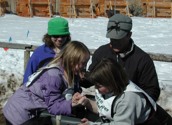 | Pinedale Online > News > March 2005 > Green River Valley Winter Carnival > Girls Arm Wrestling |