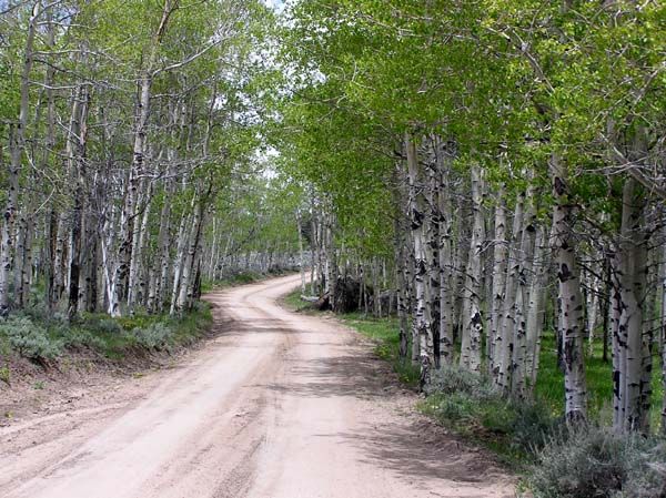 Leaves have just come on the aspen trees on the Big Sandy road. |