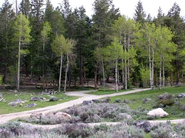 The campground is in a grove of aspen and pine trees. NO WATER is available at this campground. |