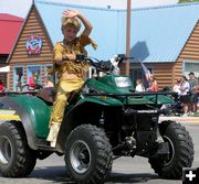 The local Pinedale volunteer fire department brought out their shiny fire engines, the rodeo royalty dazzled the crowd with their smiles, the cast of the elaborate Rendezvous Pageant appeared in costume. There were horse-drawn covered wagons, 4-wheelers, golf carts, Shriner’s mini-cars, haying equipment, tractors and fancy floats. Sheriff’s department officers walked down the street and handed out candy to the little ones.