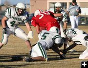 Seth Linn's (BP#30) interception of a Jason Vickrey (P#5) pass led to 1 of 3 Big Piney Touchdowns in the 2nd quarter.