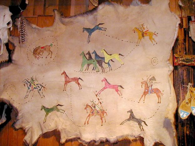 Cheyenne Raid Exploit Robe, painted Elk Hide, from Spirits of the West Galleries in Pinedale. |