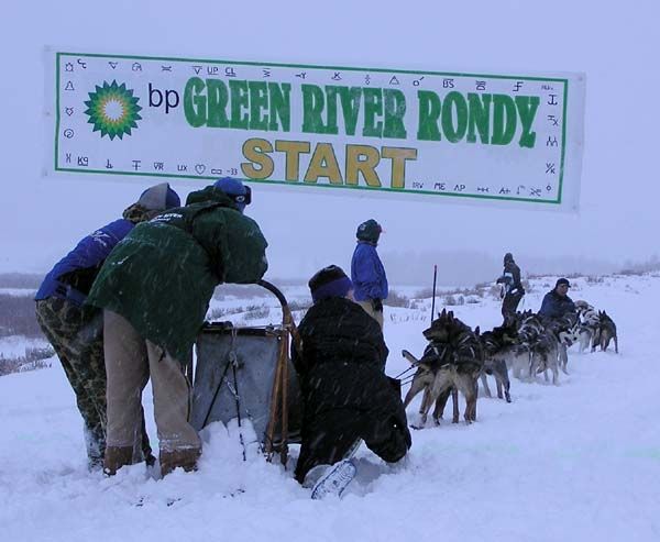 | Pinedale Online > News > January 2006 > Green River Rondy Sled Dog Race Photo Gallery > Rondy Race Start |