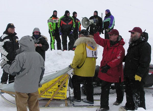 | Pinedale Online > News > February 2006 > Pinedale Stage Stop - 2006 IPSSSDR > Boulding at race start line |