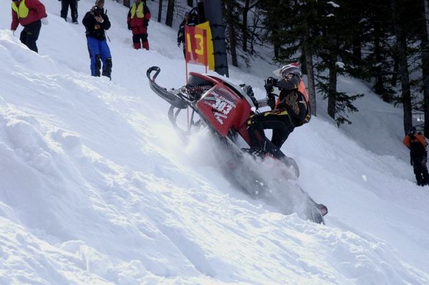 Pinedale Online > News > March 2006 > Jackson Snowmobile Hill Climb > Luke Raney in trouble