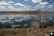 There are boat ramps at the lower (BLM) and upper (USFS) end of the lake. Spring melt should do a lot to bring the lake water level up. Right now the 2ater level is still low enough nothing is flowing over the overflow spill chute on the dam at the lower end. The upper end of the lake is forested and the lower end is in open sagebrush hills. For anyone who is a geology buff, this is a paradise for examples in glacial moraines and outwash. You can see lateral and terminal moraines, huge boulder remnants and kettle topography. Deer, antelope, elk and moose inhabit this area. We saw a large turkey vulture sitting on a fence post near the lake.
