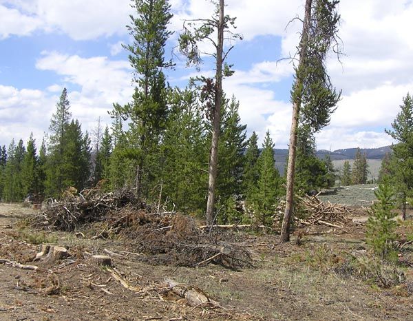 | Pinedale Online > News > May 2006 > Green River Lakes Road is open! > Logging in the campground |