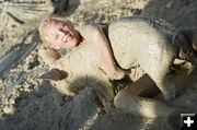 The kids helped mix the clay and water to make the mud for the pig wrestling pen. Photo by Tara Bolgiano, Blushing Crow Photography.