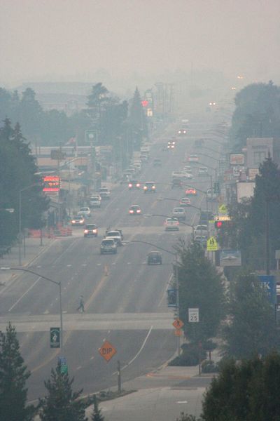 Smoke filled the air in Pinedale on the evening of Tuesday, August 15th. It also extended across the valley to Daniel, Boulder and down to Big Piney and Marbleton by dark. |