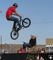 One of the more action-packed shows for kids at the Fair was the Extreme Stunt Show by Creative Sports Inc. Three BMX bike riders and one inline skater performed high jumps, flips and spills with contemporary music, theatrical comedy and audience participatio