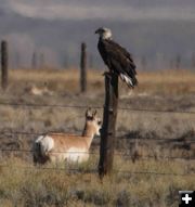Dave Bell snapped this photo Monday of an immature bald eagle sitting on a fence post next to busy Paradise Road in the Pinedale Anticline. For more of Dave's photos of the area, see his Photo Gallery
