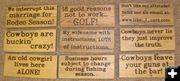 Western theme wood wall plaques measure about 9 inches by 4 inches. Groove in back for hanging on the wall. Faler's Gift Shop, under $10.