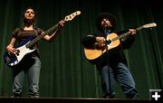 Dakota Cunningham and Ricki Thompson cheered while Connor Kingsbury played his guitar.