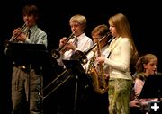 The Middle School and High School choirs took the stage first, then the Middle School and High School bands performed. Many children were in both the band and choir.