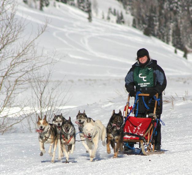 Tabetha Berge, from Glenrock, Wyoming, competed in the 6-dog race under Bob & Carolyn Bing's "Lacy J C" brand. |