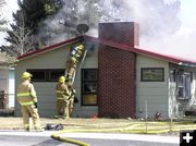 Flames and smoke came through the roof and sent a column of dark smoke into the air. The smoke set off the fire alarm at the nearby Pinedale High School. Fortunately students were out for spring break. Neither house on either side of the residence was damaged. The fire was controlled a little after 1:30 PM.