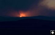 The photos on this page are the fire from different views from Monday and Tuesday, June 25 and 26. Allene Dana's photos were taken from the Jewett Elk Feed Ground, near the fire. Dave Bell's night photos were taken from over 30 miles away, looking from Pinedale. "Those are some big flames from 30 miles away," he said. He used his 400mm lens to get the shots. The daytime smoke photo was taken by Dawn Ballou Monday afternoon as seen from just north of Marbleton near Hwy 351. The Pinedale webcam view was taken Tuesday evening around 9 PM showing the smoky sunset over Pinedale. The Pinedale webcam is sponsored by Wolf Dodge and Pinedale Online.