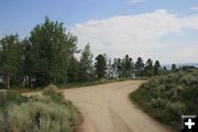 View Friday morning looking east along the lower Fremont Lake Road just after the Lakeside Lodge turnoff. The fire crossed the road from the right (south) and burned north to the lake (a short distance away to the left out of this photo). The fire burned just east of the Sandy Beach Day Use area.
