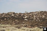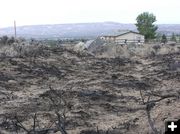 These burned signs were located at the road junction to Lakeside Lodge and the Fremont Lake campground. View from the junction looking south. Pole Creek valley and road are a mile or so behind the hills in the background. The signs read "No campfires. No charcoal grills. Stoves OK". It is believed this fire may have started from a spark from a transformer on a power pole on the Fayette Ranch.