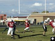 For Big Piney, I thought our controlled rush on QB Raney worked well to limit his scrambling ability. Our defensive secondary played great and ended with three picks and some great hits that eventually took the concentration away from the Pinedale receivers. Salute to first year senior Aaron Camis who replaced injured started Mike Forrester and played nearly flawlessly at his corner position. Stat-wise, John Colton led in tackles and had an interception to his credit. Nick Mackie and Taylor Moceika had 8 tackles each as did Ben Howard. The interior line of Greg Eiden, Taylor Moceika and Cameron Pedersen did a good job of putting the rush on the Pinedale quarterbacks.