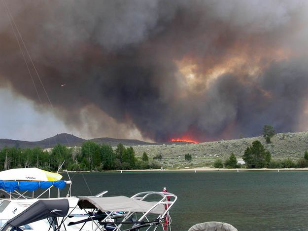| Pinedale Online > News > September 2007 > More Pinedale Fire photos > Flames and smoke approach |