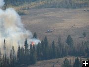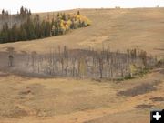 “It’s been a long season,” he said, noting that the volunteer firefighters are getting worn down. “I’m glad it’s snowing!” _____________________________ Special "Thank you!" to Kenna and Kim Tanner for sharing their photos of the fire. "We sat on the ridge to the north of the the ridge that actually caught fire. Still no definite cause, although as a reassurance, NO structures were burned, no wells burning," Kenna said. They got photos from the day of the fire, including great shots of helicopters and retardant slurry drops from two different planes. "Great help from many services (F.S., BLM, local volunteer depts., etc)" Other photos were taken six days later for a return for post-fire pictures. Hot spots occasionally flared up, creating more plumes of smoke.