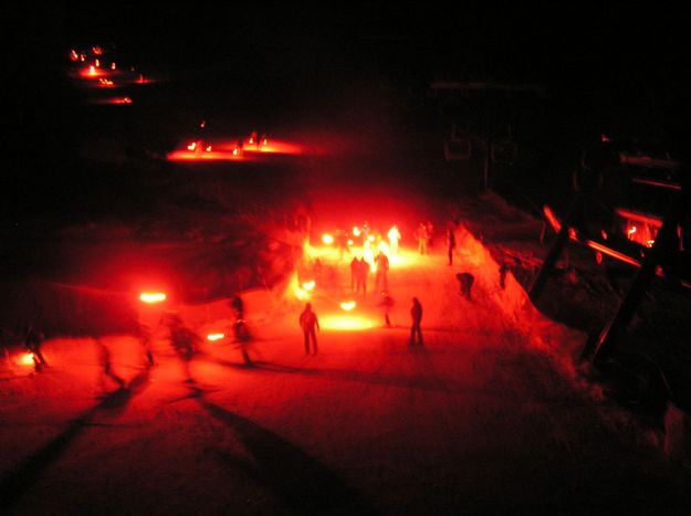 | Pinedale Online > News > January 2008 > Torchlight Parade at White Pine Ski Area > Lighted Skiers |
