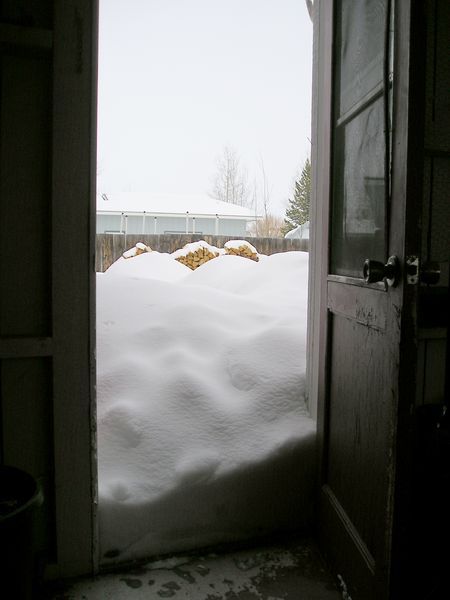 | Pinedale Online > News > January 2008 > Snow in Pinedale > Snow up to the door |