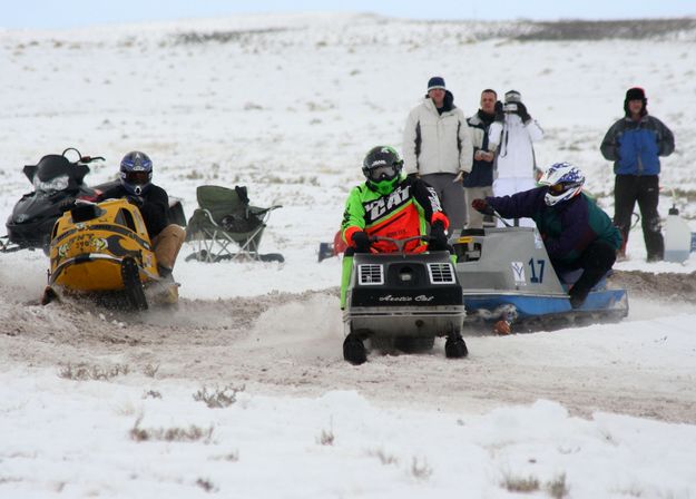 | Pinedale Online > News > January 2008 > 2008 One Lunger Snowmobile Race > Around a turn |