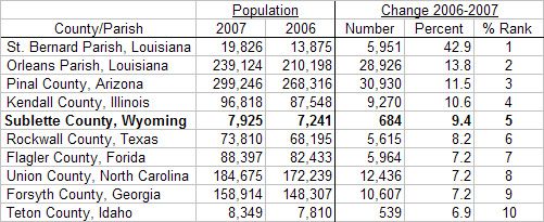 | Pinedale Online > News > March 2008 > County grew by 9.4% in 2007 according to Census Bureau > County Growth |