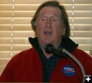 Democratic Committee Chairman Dave Racich read a prepared statement by Gary Trauner, who is running for Congress. Teton County resident Jim Roscoe then gave a short speech announcing his candidacy for House District 22.