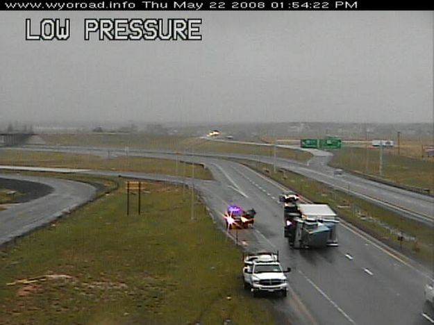| Pinedale Online > News > May 2008 > Southeast Wyoming highways closed due to severe weather-Tornado Warnings > Overturned Semi |
