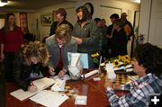 Helena Linn took a few moments after the event to autograph her new book, "Winter in the Bunkhouse" for Holly Davis and Mame Smith.