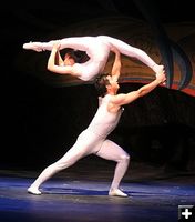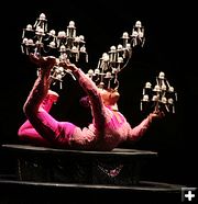 Each dancer continuously spun from three to five plates on a stick with each hand while doing incredible gymnastic feats, acrobatics and contortions. None were dropped. Photo by Pam McCulloch.