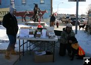 Pinedale's 2009 Junior Musher is ten-year old Pinedale Middle School 5th grader Olivia Pape. Here, she gets a ride on the sled driven by 14-year old Emily Wade of LaBarge. Their sled was the first one to go and begin the Pinedale Stage of the IPSSSDR.