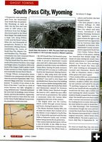 South Pass in Wild West magazine The article about South Pass was written by Johnny D. Boggs and appeared under the magazine’s "Ghost Town" section. It gives good information about the history of the area and glimpses into the town’s colorful past. South Pass City is now a state historic site which is open from May to September (www.SouthPassCity.com). The full page photo spread shows the 1890 Carissa Saloon, South Pass Hotel, the town’s liquor storage cabinet, a monument to Esther Hobart Morris (the nation’s first female justice of the peace), and the 1870 Sweetwater County Jail.
