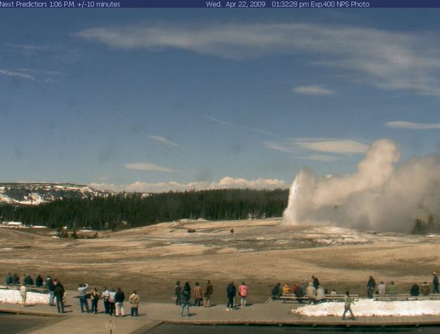 Webcam view of Old Faithful Geyser at Yellowstone National Park on Wednesday, April 22, 2009. |