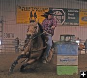 Amber Robinson of Pinedale was a very busy all-around cowgirl competing in the barrels, goat tying, pole bending and break away roping. Amber has been training on a young barrel horse so she experienced some bad luck this weekend, but we all know Amber and things will change as the season progresses. She also spends her time working her performance horses and looking forward to the next rodeo.