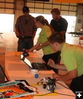 Clockwise: Anna Shafer, David Rule and Tyler Moritsch. Anna programs her robot.