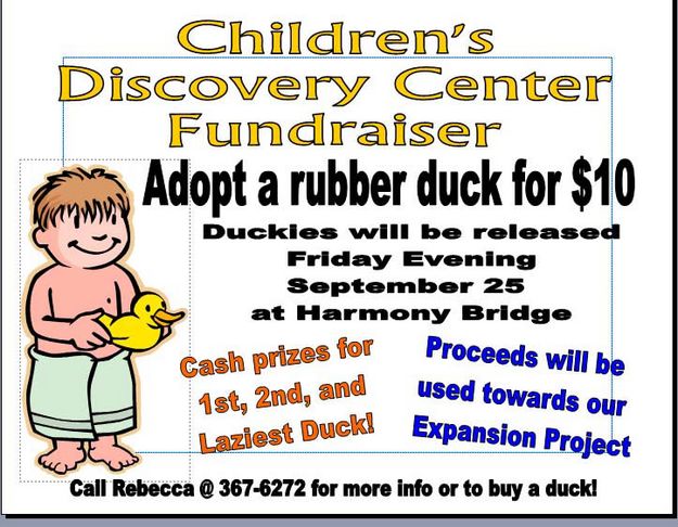 | Pinedale Online > News > September 2009 > Children's Discovery Center Adopt A Rubber Duck Fundraiser Sept. 25th > Adopt a Rubber Duck! |