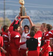 Josh Powers (P5) shows his enthusiasm after Jason Meiring ( P12) scores Pinedale’s first touchdown in the game.