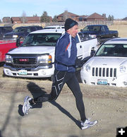 Ken Konicek, of Pinedale, was the first runner across the finish line. Bob Rule, KPIN 101.1FM Radio.