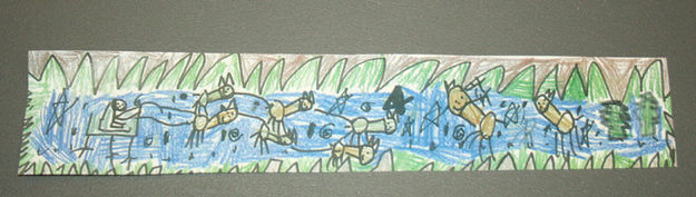 This was one of the sled dog book mark drawings done by local youngsters that were used as decorations on the tables at the banquet. |