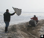 Mike Carrillo flags in Sled #175 (Mike Jaaskolski/Michael Hughes) across the finish line.